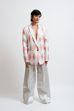Our “Starfall Jacket” featuring digital-printed oversized, structured fit, edgy jacket. Designed with a classic bold peak collar and satin detailing, this jacket exudes a sense of modern sophistication. The intricate starry digital print, adds a touch of whimsy and mystique. Crafted from premium materials for comfort and durability, this jacket is both a statement piece and a versatile layering option.